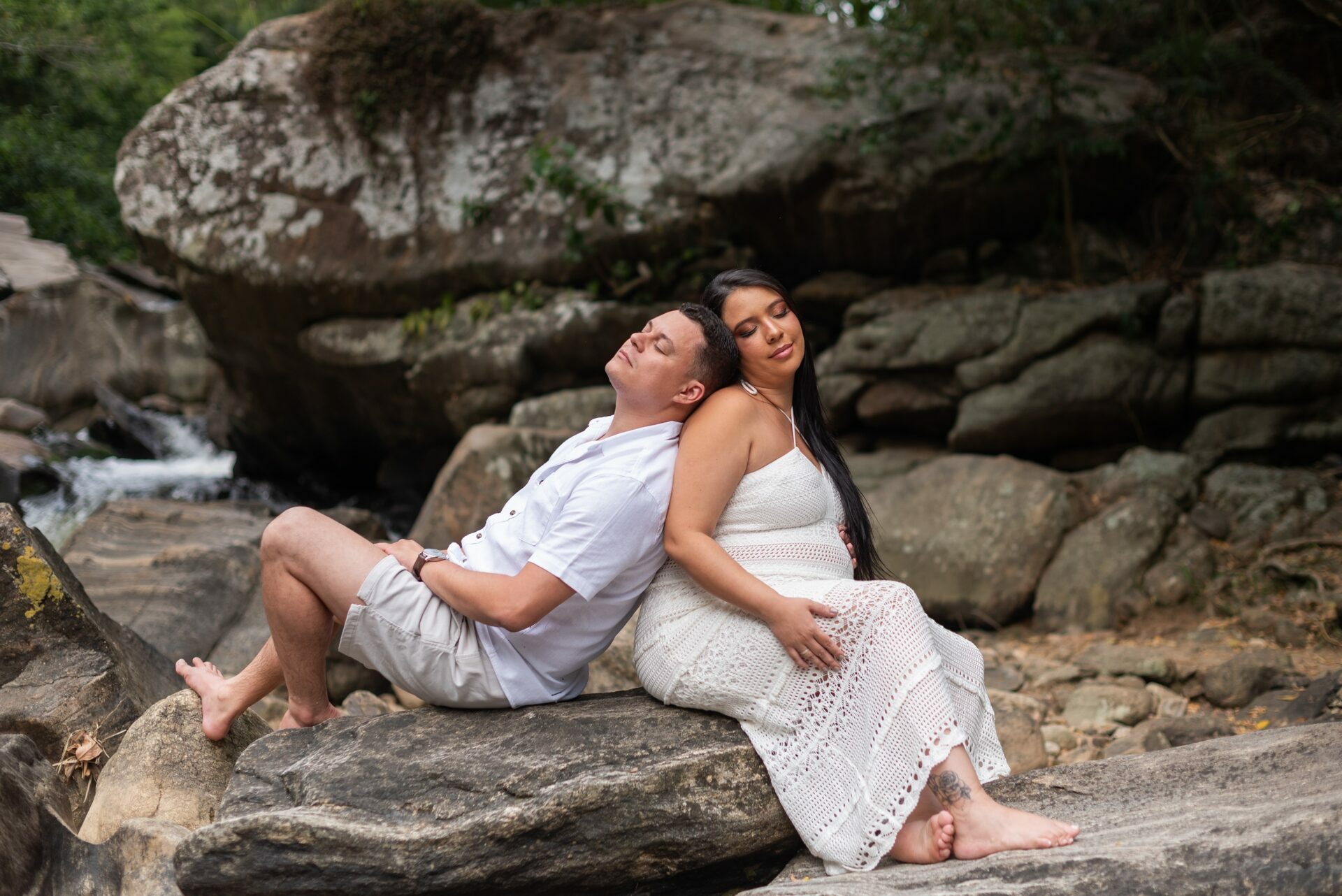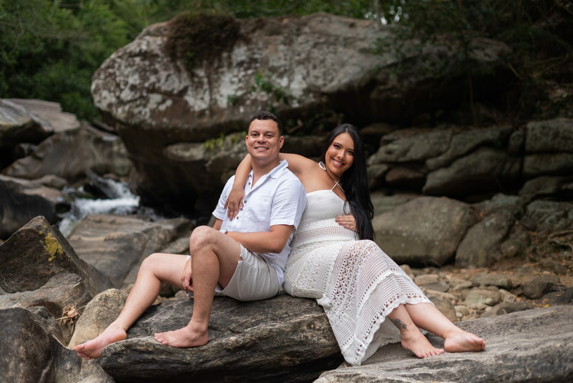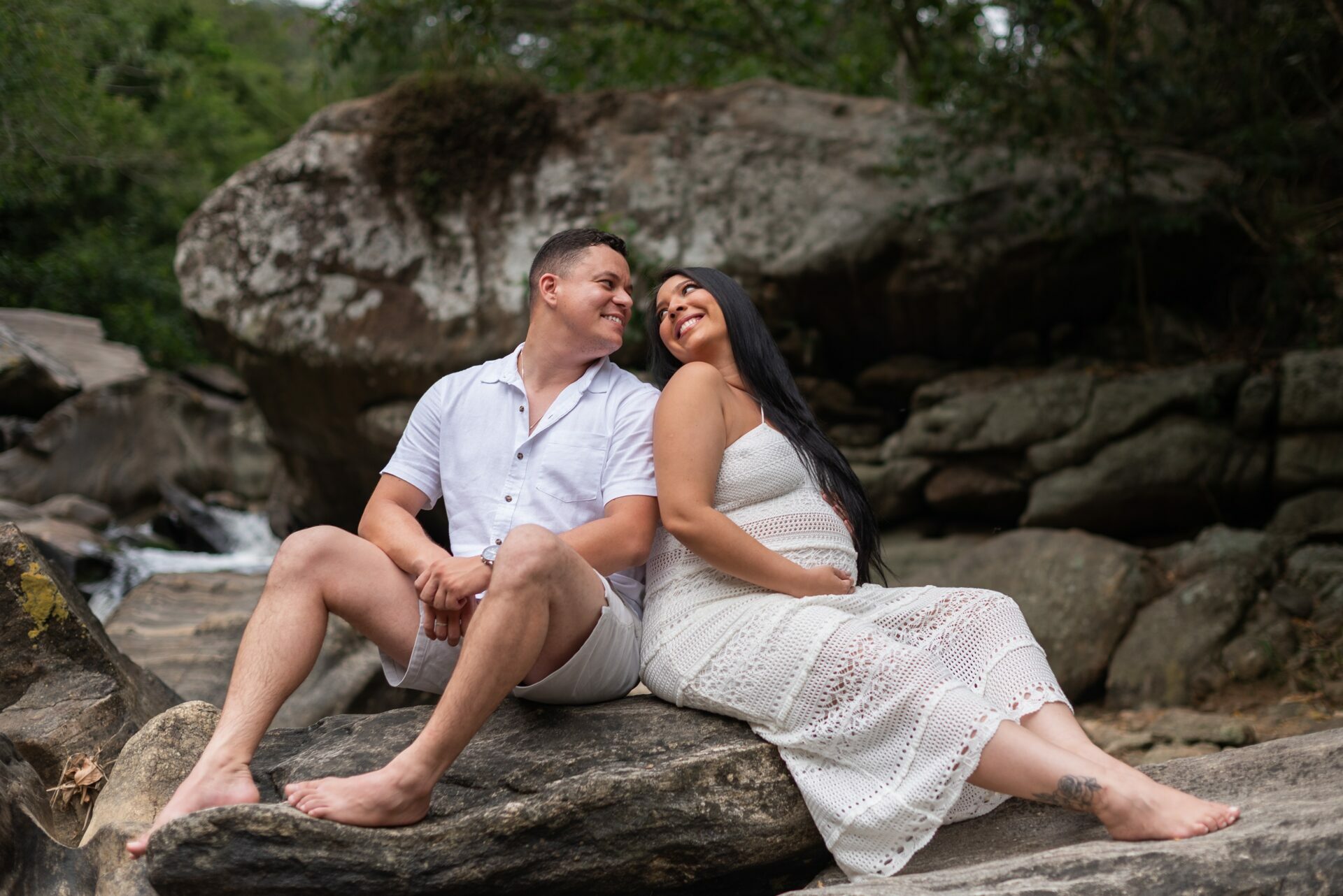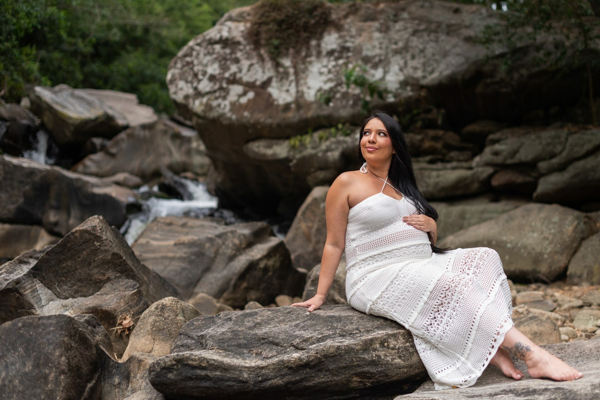 Foi realizado na cachoeira em Miguel Pereira o ensaio da Thaís.